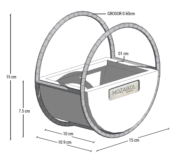 Maceta de media circunferencia. Peso: 400 gr. Diámetro: 15 cm. Profundidad: 10 cm- Altura: 7,5 cm. Accesorio en varilla metálica con pintura electrostática. *(Planta, Instalación y Envío No incluidos, contactanos a nuestro whatsapp para cotizar el envío)